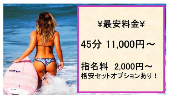 料金 | 45分11,000円~ | 30分9,300円~ | 60分16,000円~ | 70分16,000円~ |