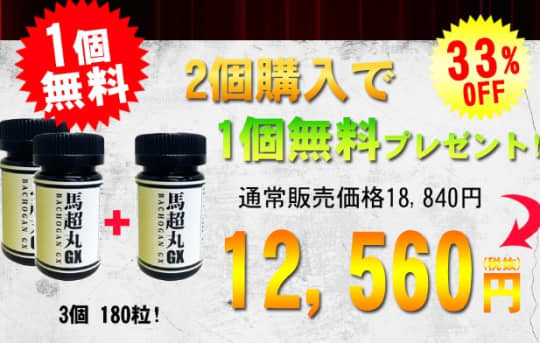 馬超丸GXは1個6,280円で購入できます。単品購入の場合は送料がかかってしまうので注意してください。