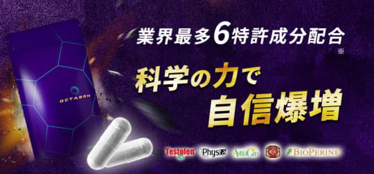 オクタゴンは特許成分が6つも配合されている精力剤。さらに特許技術で他社にはできなかった成分の増大に成功しています。完全国内生産されていて、定期購入で毎月お得に飲める安全性にもコスパにも優れていますよ。サポート体制も整っているので安心です。口コミを公開します。