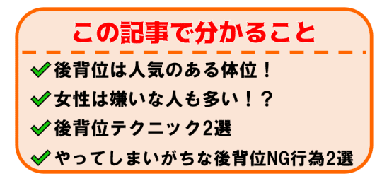シンプルな体位ながら、刺激の強い後背位ですが、どうせならお互いがとっても気持ちいいやり方を覚えておきましょう!