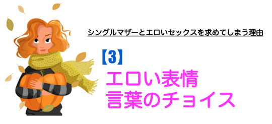 シングルマザーの女性の3番目の魅力は、今までの経験上で身に付けた、男性が喜ぶ言葉や仕草を熟知しているので、エッチな場面で男性の気分を高める言葉をチョイスして使って来るところです。