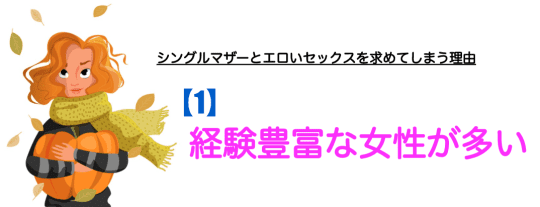 シングルマザーの女性の一番の魅力は、セックスの経験が豊富なことです。