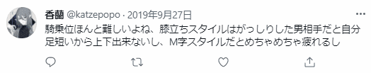TwitterにもM字騎乗位が疲れる・・という女性のつぶやきがあります。