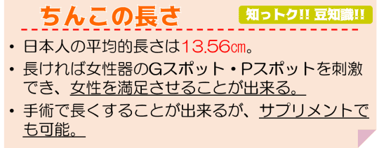 なお、上記の平均サイズは、全て勃起時のサイズ。